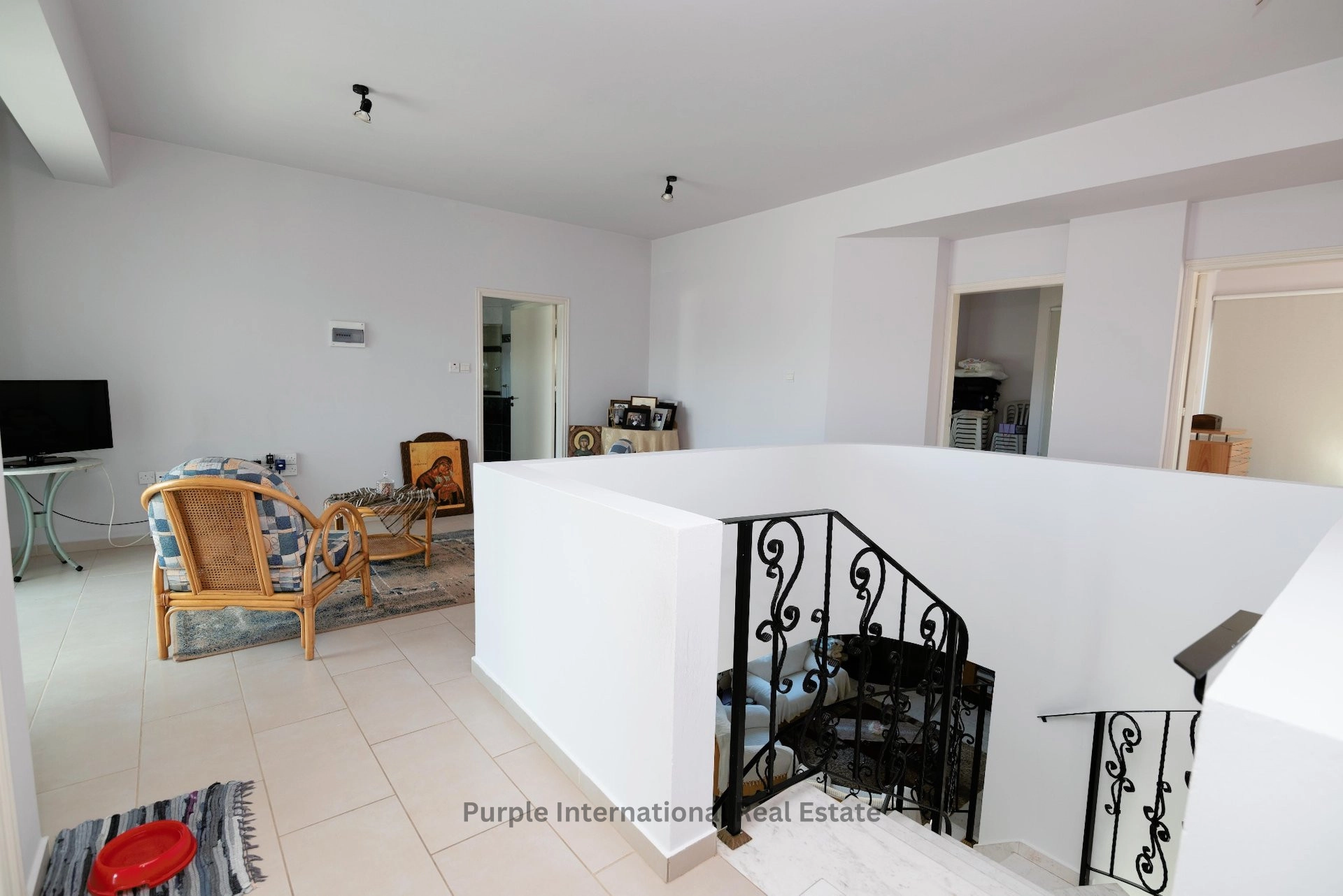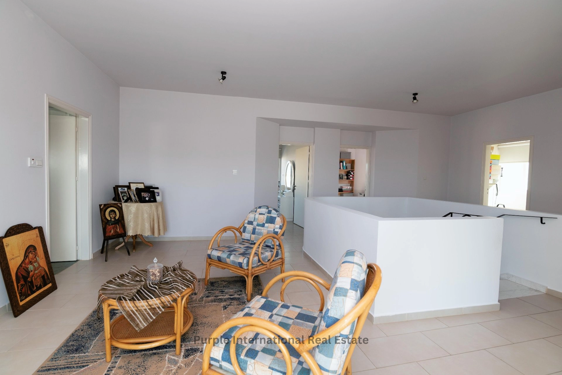 Leading up to the first floor are three good sized bedrooms, a large family bathroom and a storage room, the master bedroom enjoys an en-suite. The spacious hallway is being used as an extra lounging area with direct access to the huge front balcony.
