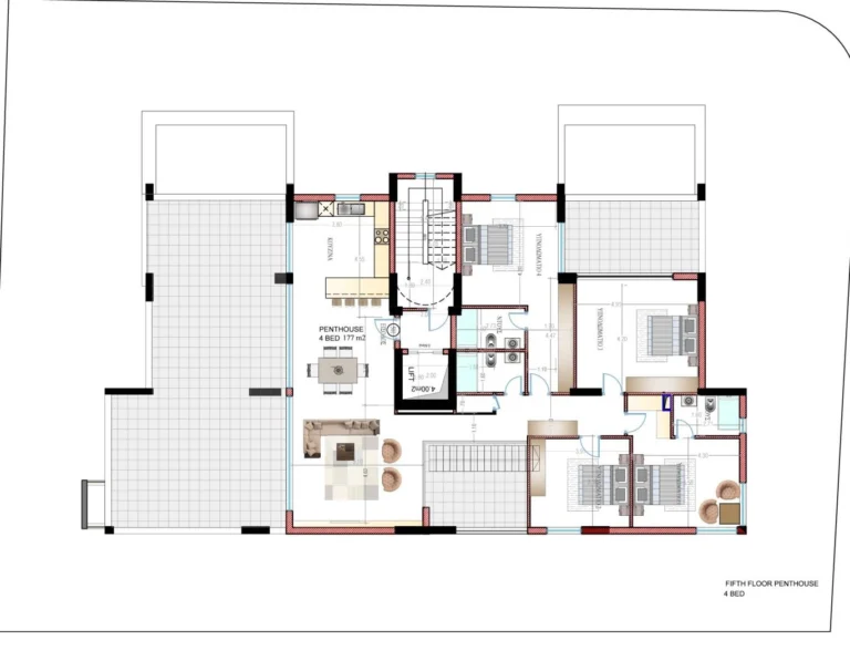 For sale is a modern penthouse apartment currently under construction in the heart of Kato Paphos. With a generous internal space of 110 m², this property offers three spacious bedrooms and two contemporary bathrooms. The apartment is located on the top floor and is easily accessible by an elevator, providing added convenience and privacy.