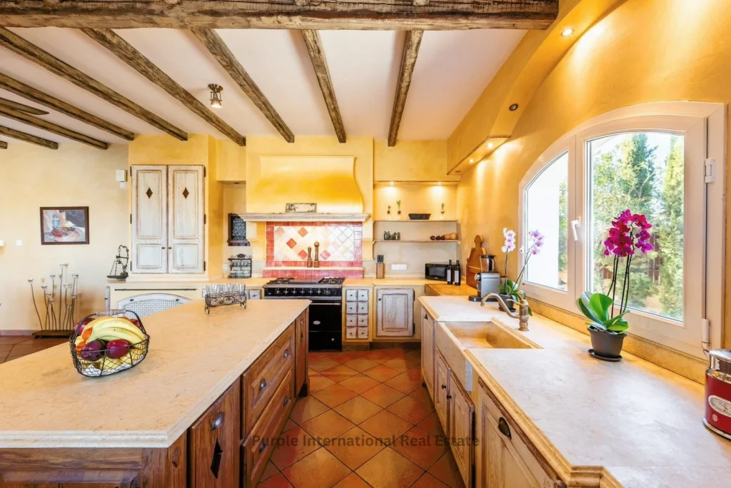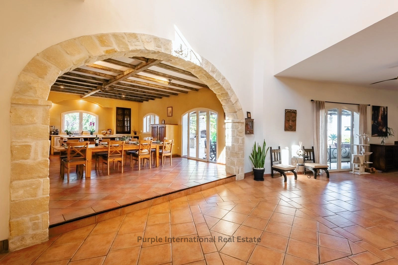 Carefully designed and custom-built by the owners, the villa boasts traditional stone and wood details, creating a comfortable and homely living space. Through the gated entrance is the large driveway that can accommodate parking for more than four cars, ensuring both convenience and privacy.