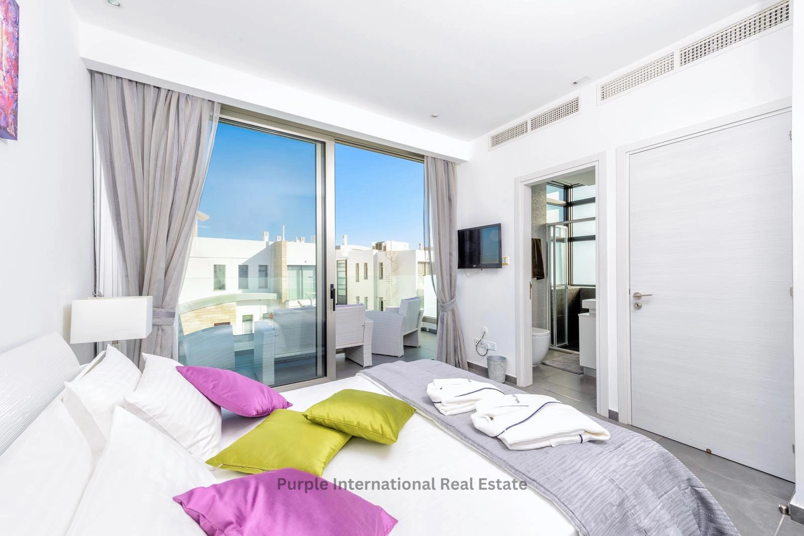 This fabulous luxury villa is situated on an exclusive and private beachfront gated community in a prime area of the cosmopolitan coastal resort of Protaras. The Developer has won multiple property and architecture awards, including Virgin’s Property Development of the year 2014.