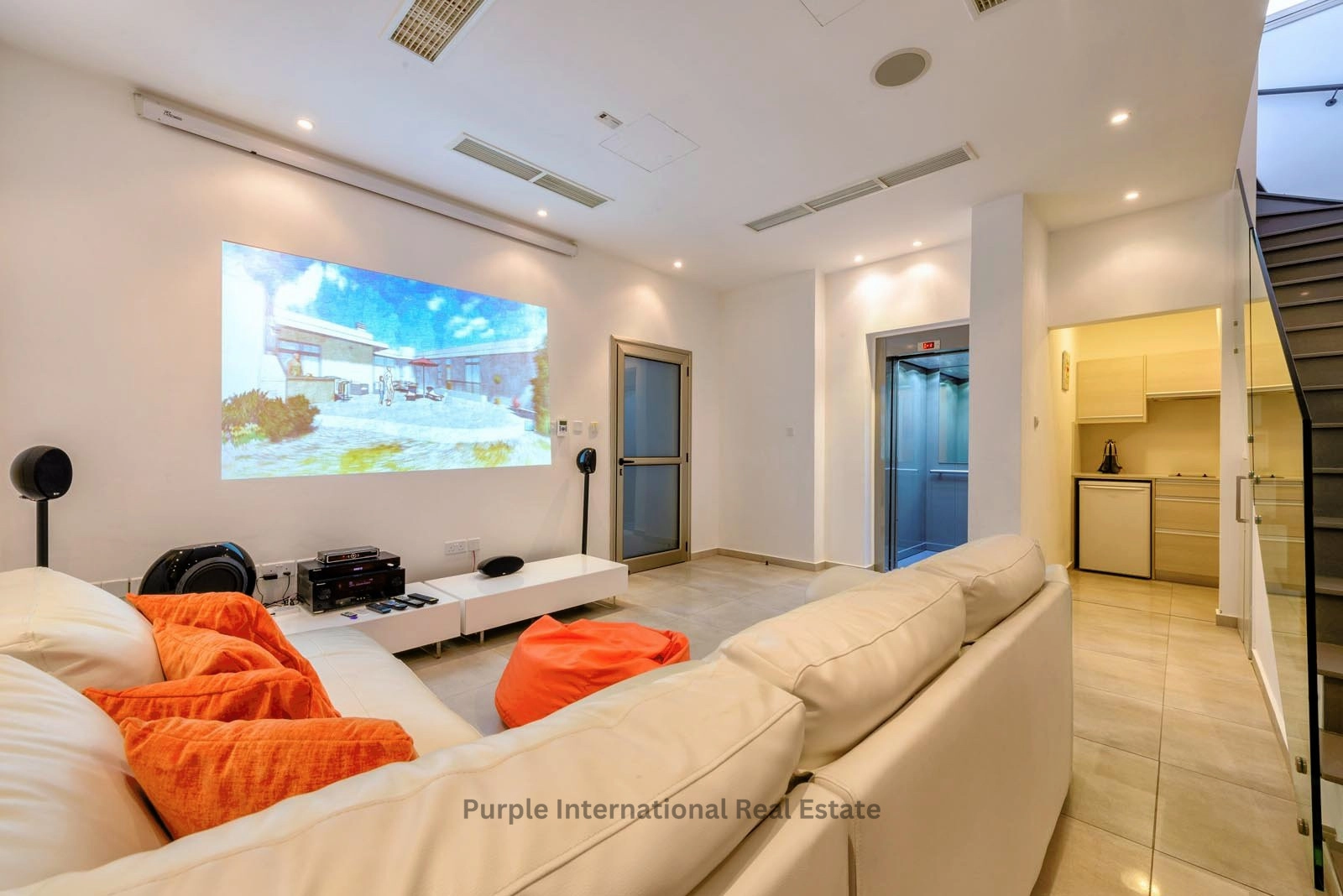 This stunning residence comprises four levels. Starting from the 173 square meter basement which features underground parking for up to 3 cars, a gym, cinema room with comfortable seating area and a small kitchenette. On this level there are also two bedrooms, one very comfortable twin bedroom and a spacious single room, both sharing a shower room. A private internal lift provides access to all floors, except the roof terrace, which is accessible via internal stairs only.
