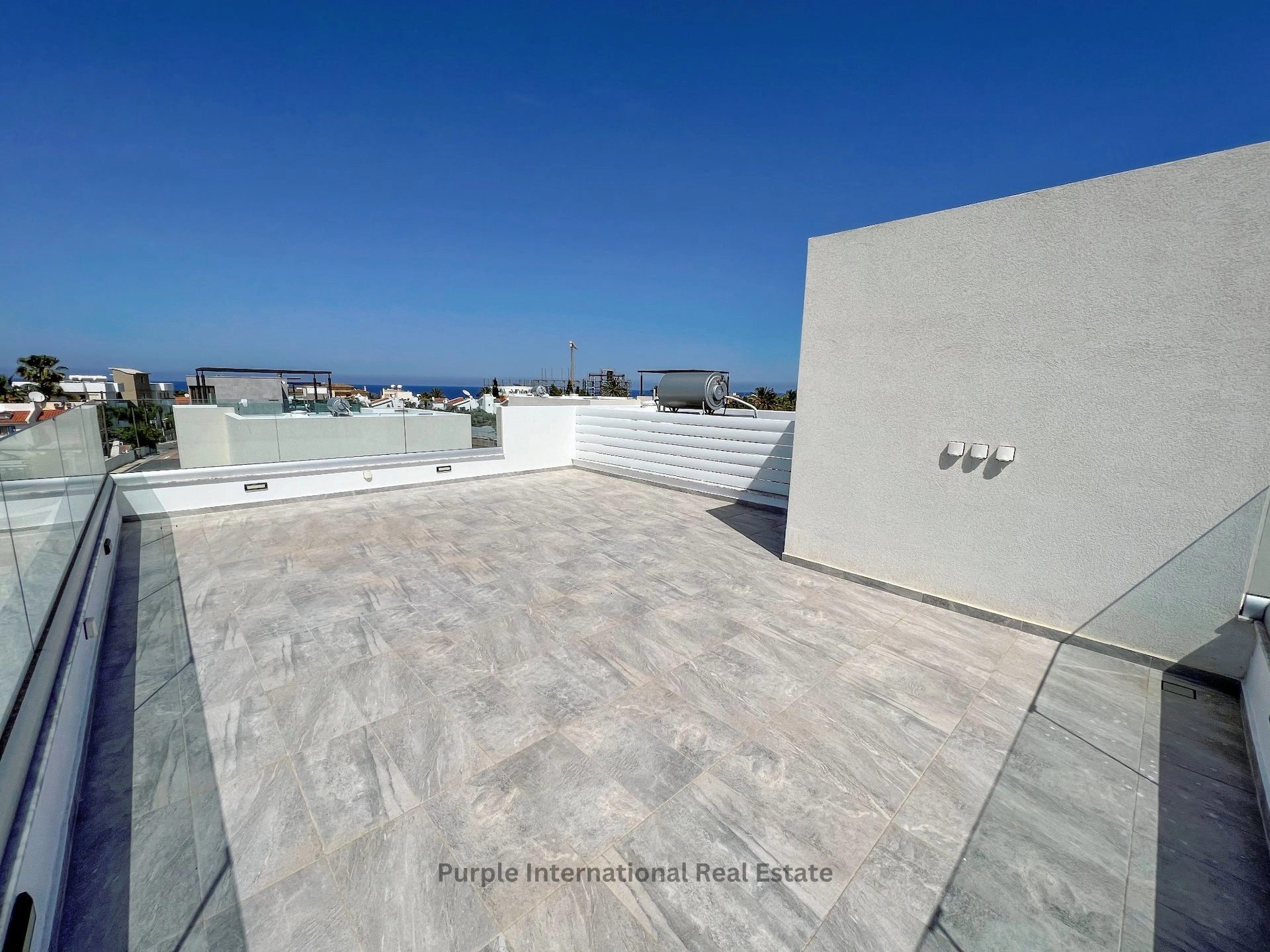 This exclusive residential project provides a high-quality lifestyle that is the hallmark of the area. The ground floor has a large open plan living and kitchen area, the first floor has three spacious bedrooms. The property enjoys beautiful views from a nice sized roof garden.