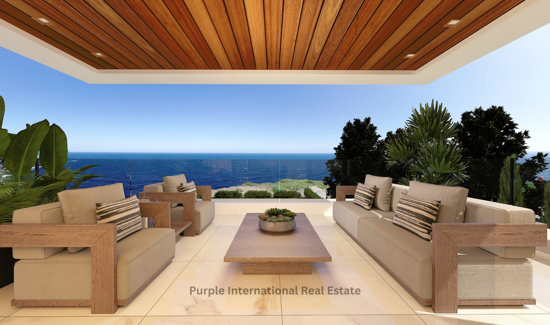 • Private infinity swimming pool with the surrounding patio paved in anti-slip granite tiles natural stone or combination with synthetic wooden deck