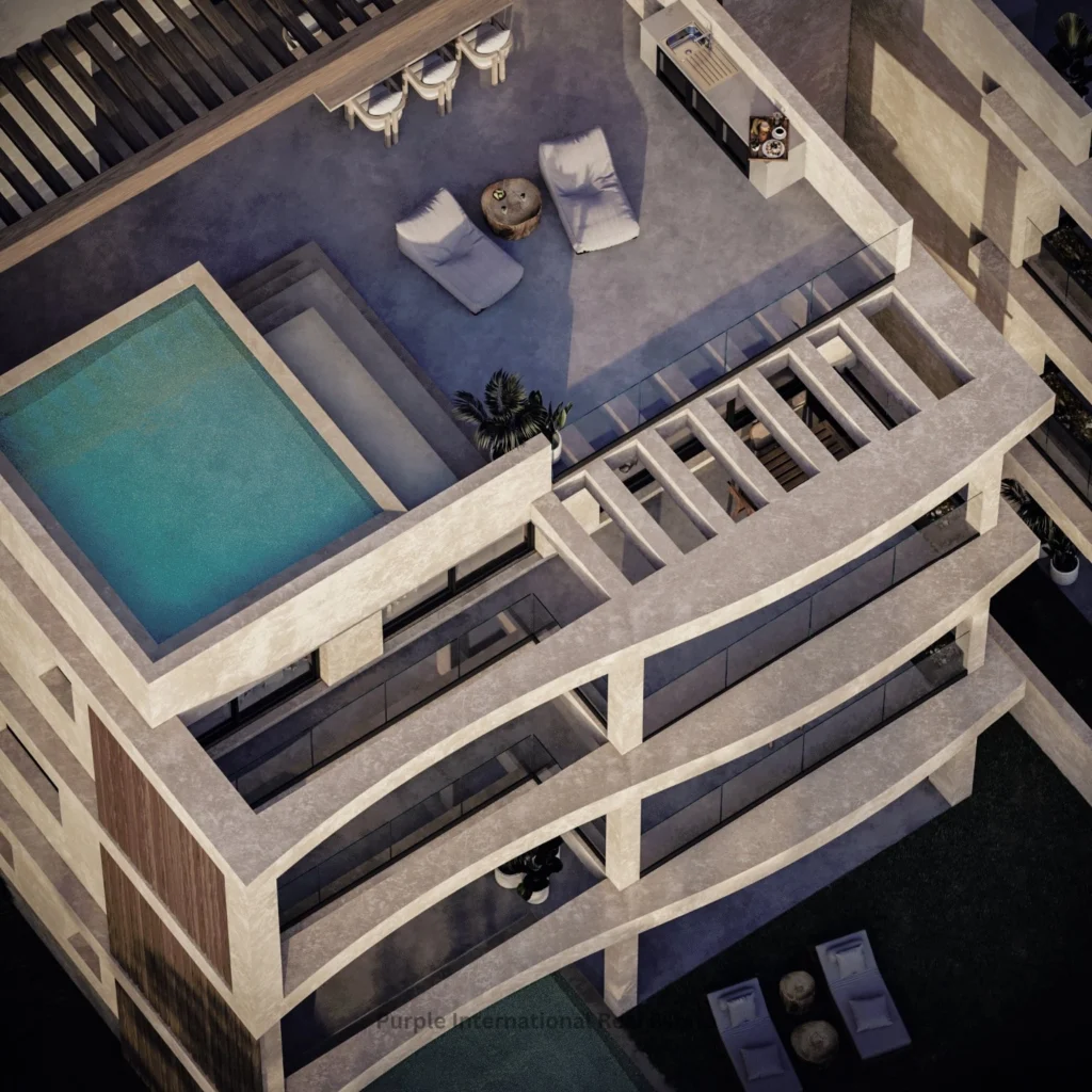 The complex consists of six blocks of apartments which provide a sense of privacy, comprising of 64 apartments with sea views or views of the communal swimming pool. They also include penthouses with a private pool and apartments with a private garden.