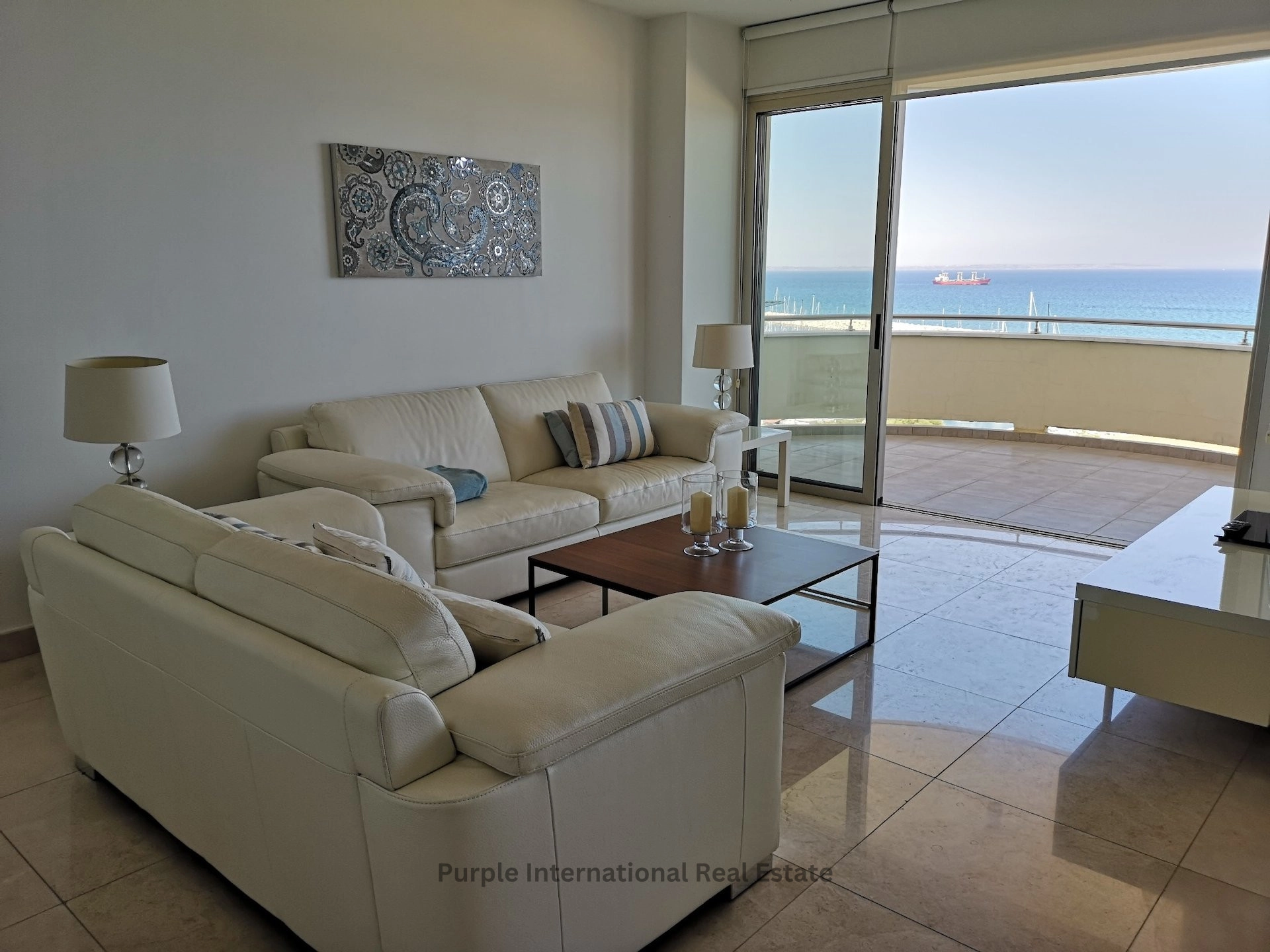 Welcome to a Luxurious Three-Bedroom Apartment located on the Sixth Floor positioned on a Prestigious Waterfront Development of Finnikoudes!