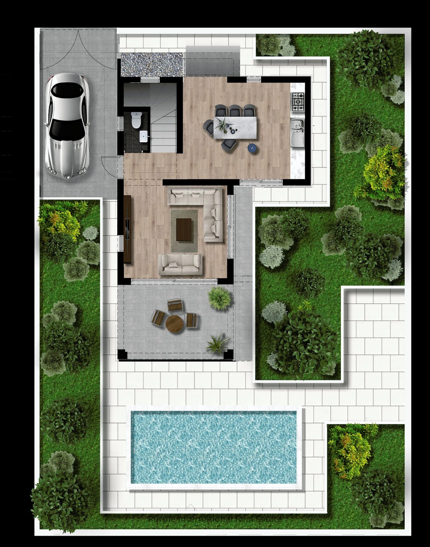 Comprising 18 opulent villas, The Project presents an excellent opportunity for both investment and home ownership. The residences boast clean, minimal geometric lines, showcasing a distinctive design and elevated aesthetics, evident in the natural tones of both interiors and exteriors. Each villa features a private swimming pool, garden, and a roof garden with captivating sea views.