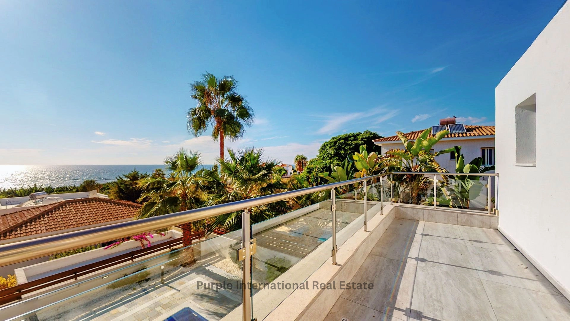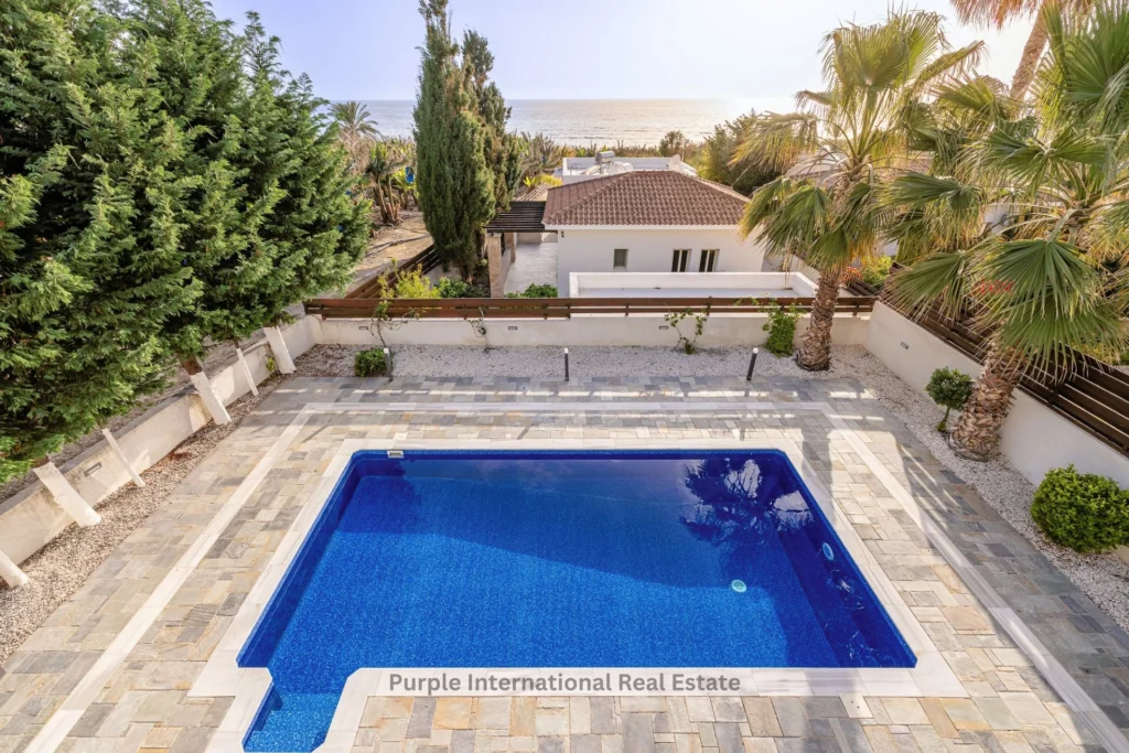 Discover an exquisite 5-bedroom villa located just one row back from the seafront, offering breathtaking views and capturing the serene ambiance of the Mediterranean. This fully renovated property blends modern design with tranquil seaside living.