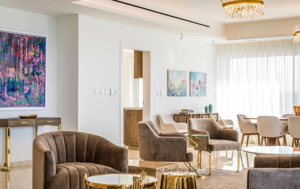 Enjoy sweeping panoramic views, including a beautiful sea view, from your own living room and private balcony. The location in Pyrgos blends serene residential living with practicality. Here, you will find easy access to local shops, restaurants, and daily amenities, along with quick routes to beaches and leisure activities.