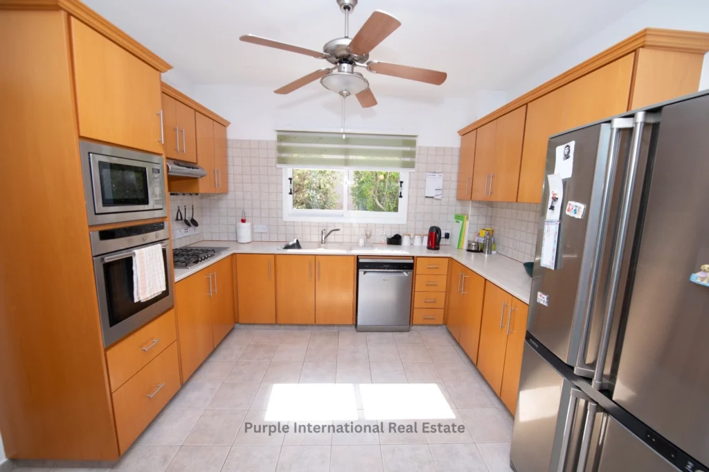 Outside, you’ll find a private pool set within a low-maintenance garden, providing the perfect retreat for outdoor living. The property also includes a driveway with space for two cars, gas central heating, air conditioning, ceiling fans, and ample storage space.