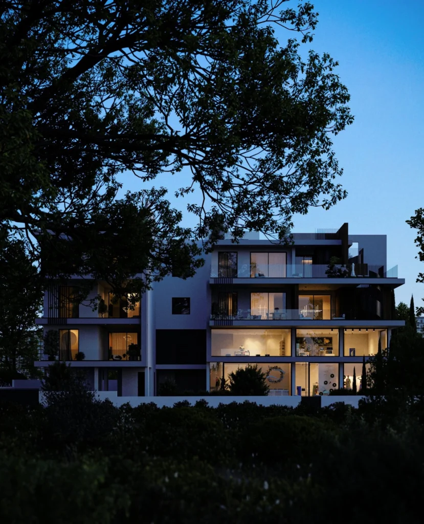 This luxury complex comprises three floors with a total of 12 meticulously designed two and three-bedroom apartments. It showcases a modern architectural marvel that seamlessly blends visionary design with opulent interiors, redefining contemporary living. The building’s style blends glass, steel, wood, and concrete, creating a unique urban oasis. Each apartment offers spacious layouts, creative use of space, and sun-drenched interiors thanks to generously-sized verandas with glass fronts.