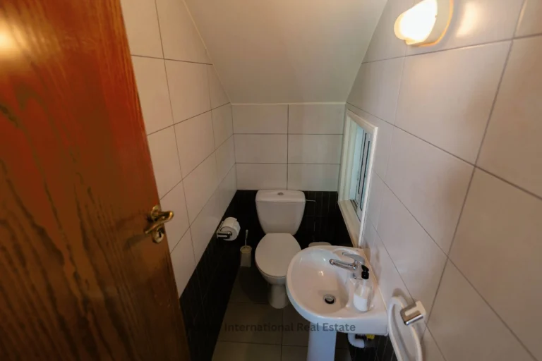 Upon entering, you’ll be welcomed by a bright and airy open-plan living space featuring a spacious lounge, dining area and a well-appointed kitchen with plenty of cupboard space and countertops. A convenient guest W.C. is also located on the ground floor along with a garage, currently utilized as storage by the owner.