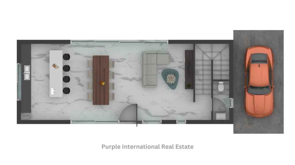 Upon entering, you’re greeted by an open-concept layout that harmoniously connects the kitchen, living, and dining spaces. Designed with luxurious specifications throughout, the villa promises an elevated coastal lifestyle. Double-glazed windows invite generous natural light in to the interior spaces, filling the home with a warm and welcoming atmosphere.