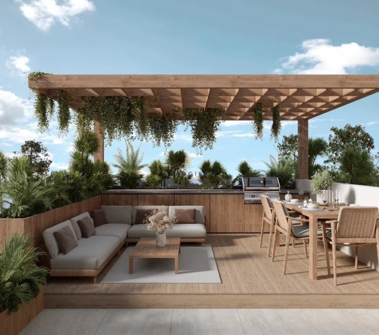 The villa features spacious, ergonomically designed interiors that ensure practicality and ease of living. Neutral, natural tones enhance the sense of tranquility, serving as a refined backdrop for a home of exceptional style. Expansive windows invite natural light to fill the interiors, creating a seamless flow between indoor and outdoor living areas. The pool, open terraces, and lush gardens harmoniously coexist with the interior spaces, offering an atmosphere of relaxation and comfort.