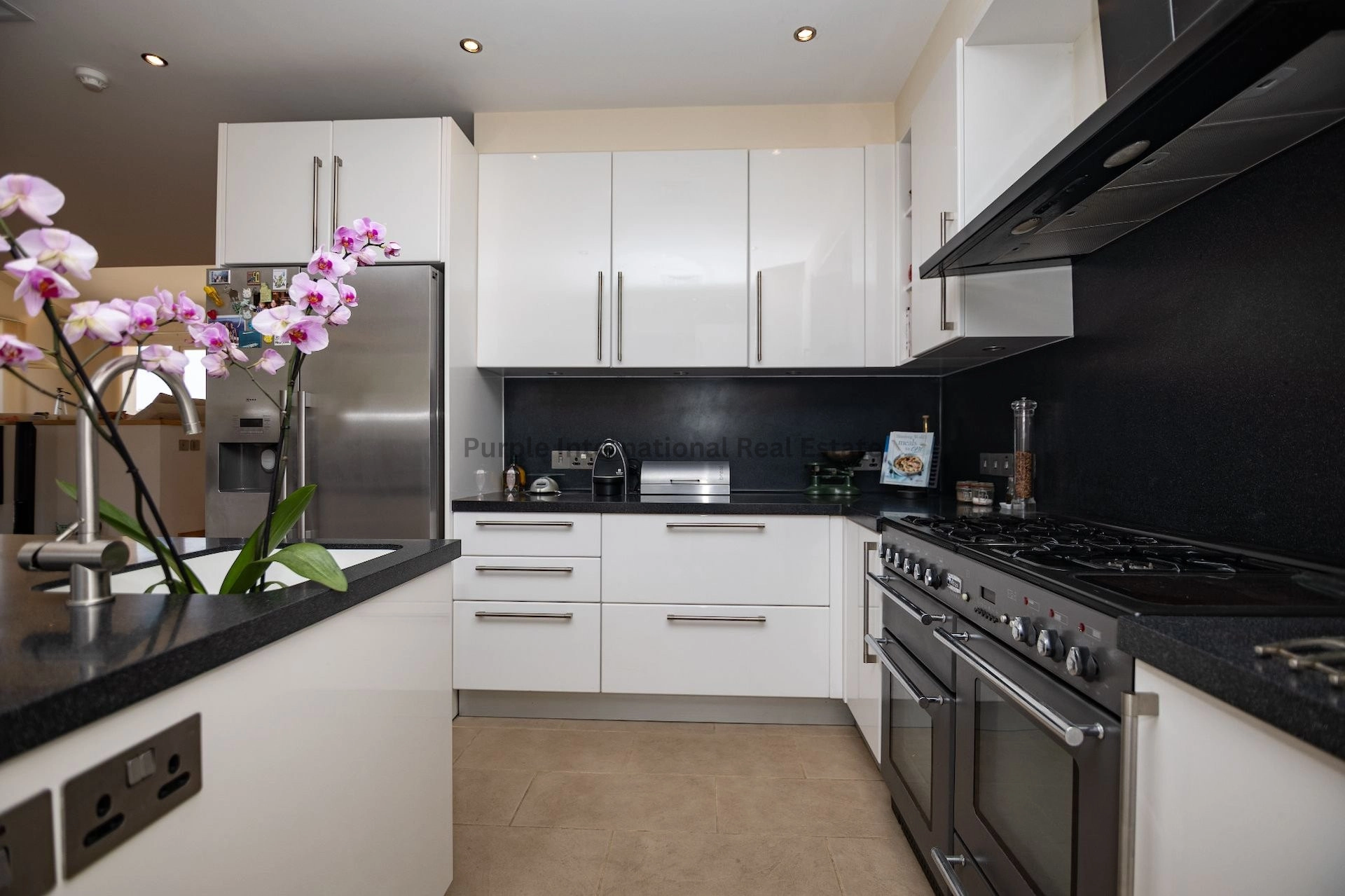 First Floor: Ascending to the next level, a sleek, modern kitchen greets you with pristine white gloss cabinets, granite countertops, and a central island with a breakfast bar. The kitchen seamlessly transitions into a cozy living area, ideal for relaxation. Down the hallway, the master bedroom beckons with expansive views of rolling countryside and the sea, complete with ample wardrobe space and an en-suite shower room. A separate dining area, also enjoying stunning views, completes this floor’s charm.