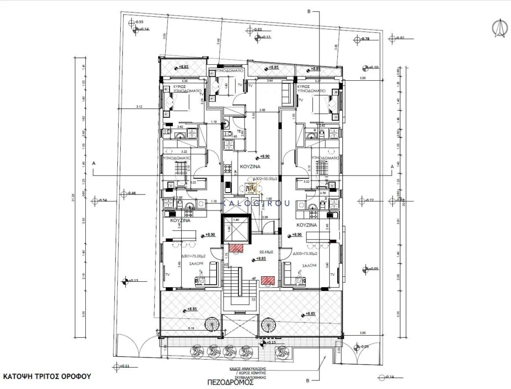 Third floor apartment for sale in Vergina area, Larnaca Town. It consists of a kitchen, living and dining area in open plan space, a main bathroom (with shower), two bedrooms, one en suite shower & wc large covered veranda and a roof garden boasting breathtaking view to the city. Moreover, the property has private covered parking area and storage room.