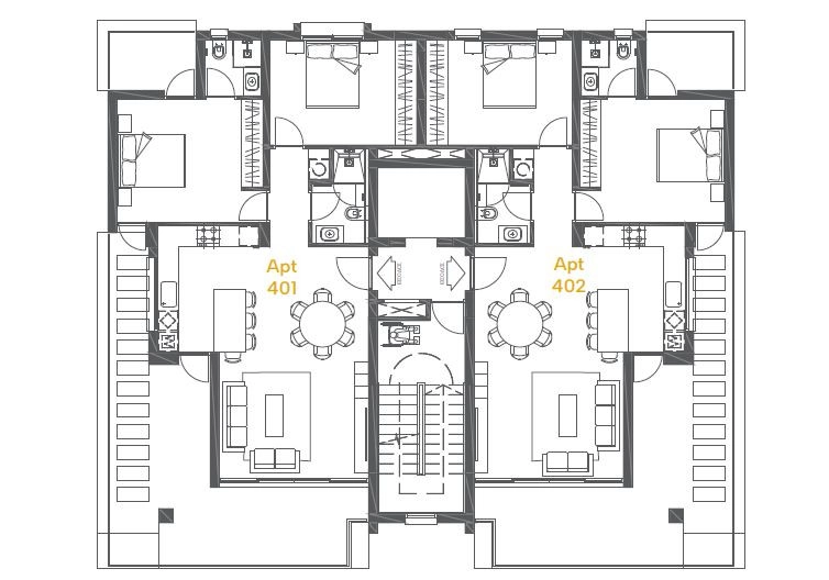 Spacious terraces punctuate the facades providing articulated outdoor living spaces. The chic and practical interiors combine carefully crafted layouts that work hard to maximise the interior spaces while ensuring the focus remains on the generous terrace and views beyond.