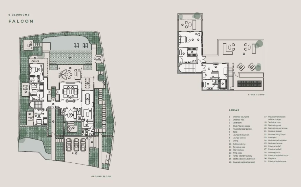 The villa is as striking as the majestic bird it is named after and commands equally spectacular views cinematically framed by lakes, the forest and the luscious greenery of the Golf Course – especially from the large private terraces of the two principal suites on the first floor.