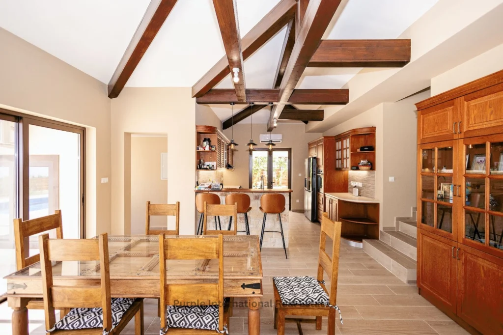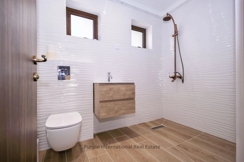 Enjoy the refreshing 4×8 swimming pool, perfect for relaxing on warm days. The house is equipped with photovoltaic provisions for energy efficiency and underfloor heating on the middle level and in all bathrooms, ensuring comfort year-round. Every room is fitted with A/C units, and the beautiful wooden beams and fireplace add a touch of warmth and character to the home.