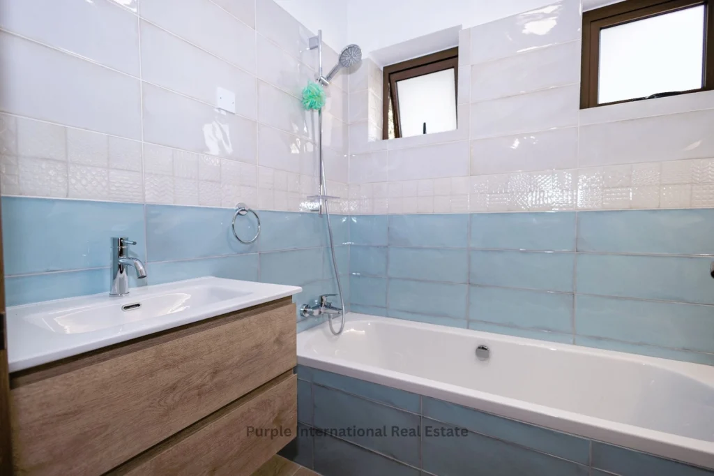 Step outside to the covered pergola for outdoor lounging or enjoy the serene rooftop veranda with stunning sea views. The garden, complete with fruit trees and a central watering system, offers a peaceful retreat.