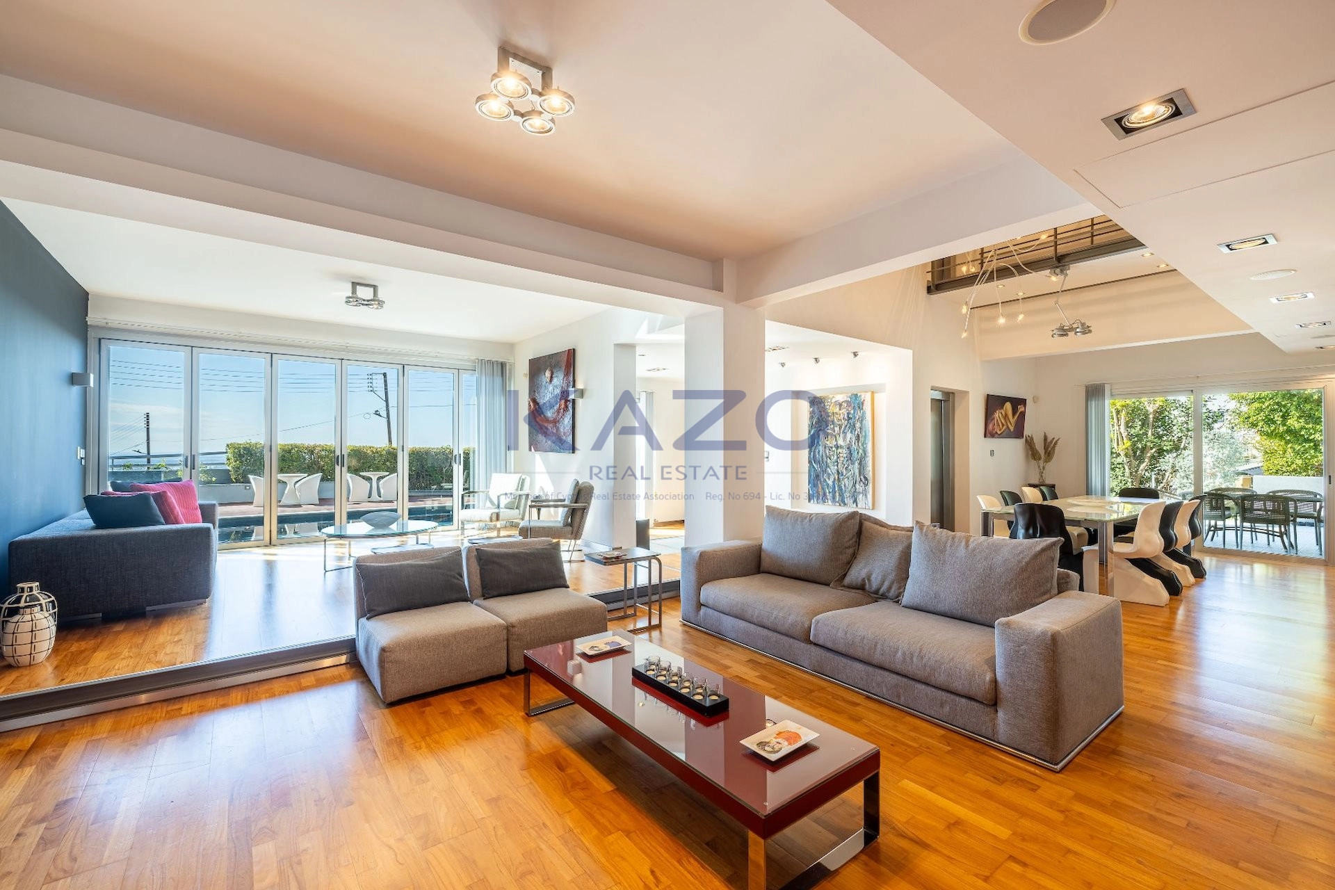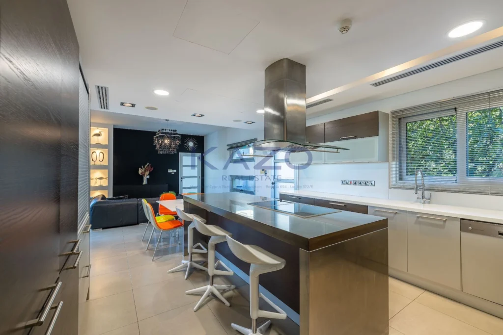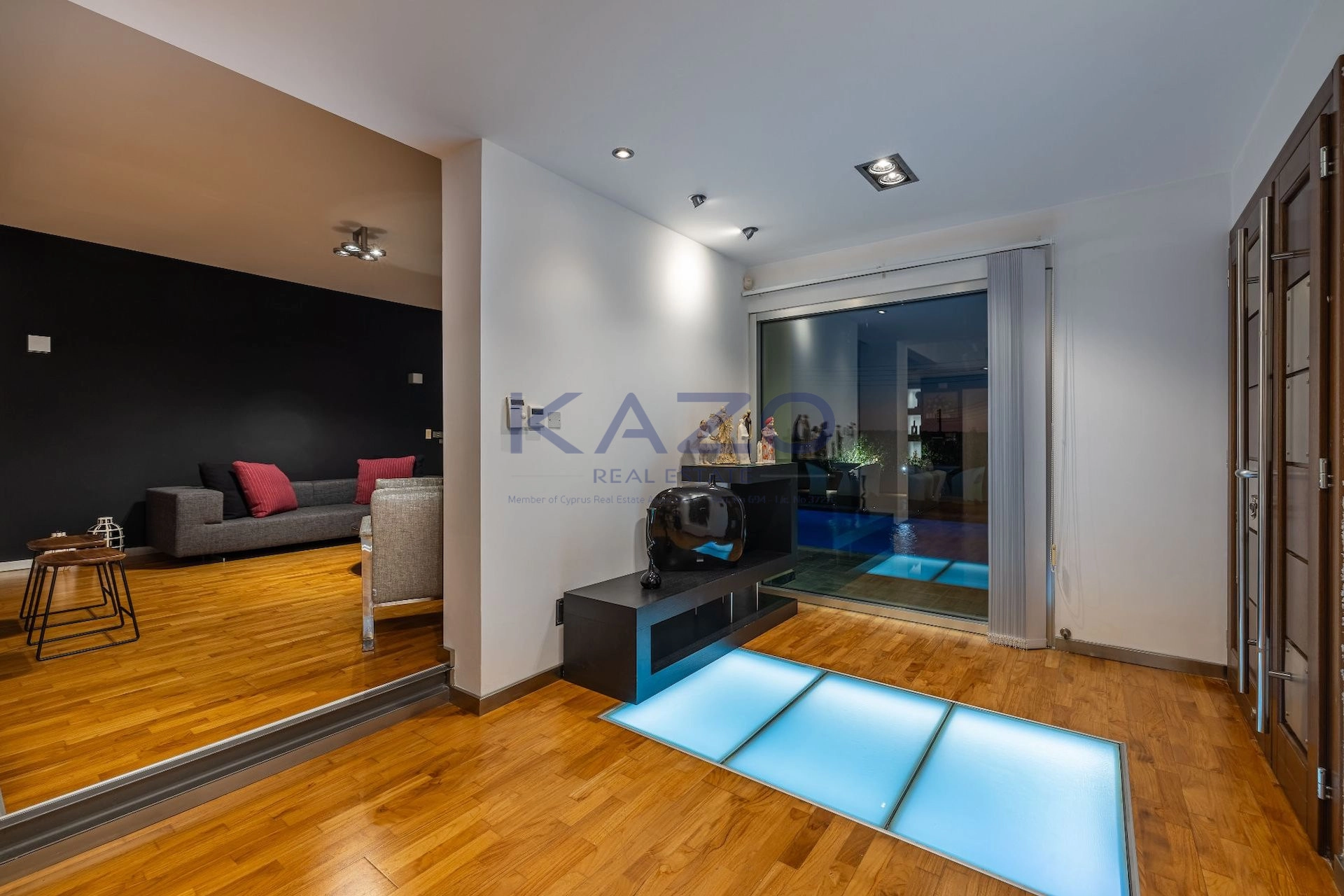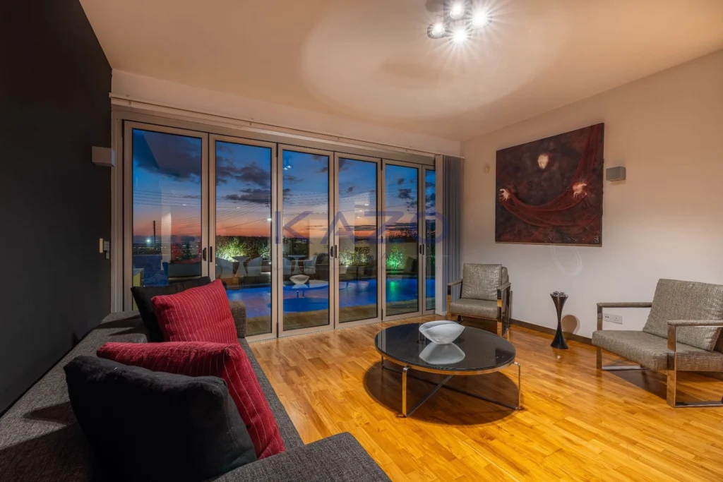 Situated in the prestigious area of Ayia Fyla, and standing on a generous 646m2 elevated Corner Plot, this modern villa offers breathtaking City & Sea views and a comfortable living experience. The property spans 559m² of unique internal areas, 76m2 of covered verandas, 263m2 of uncovered verandas, surrounded by 136m2 of beautifully landscaped green areas. The property spans 3 levels, including 6 bedrooms, 4 bathrooms, an aquarium, a glass tunnel elevator, and a large swimming pool.