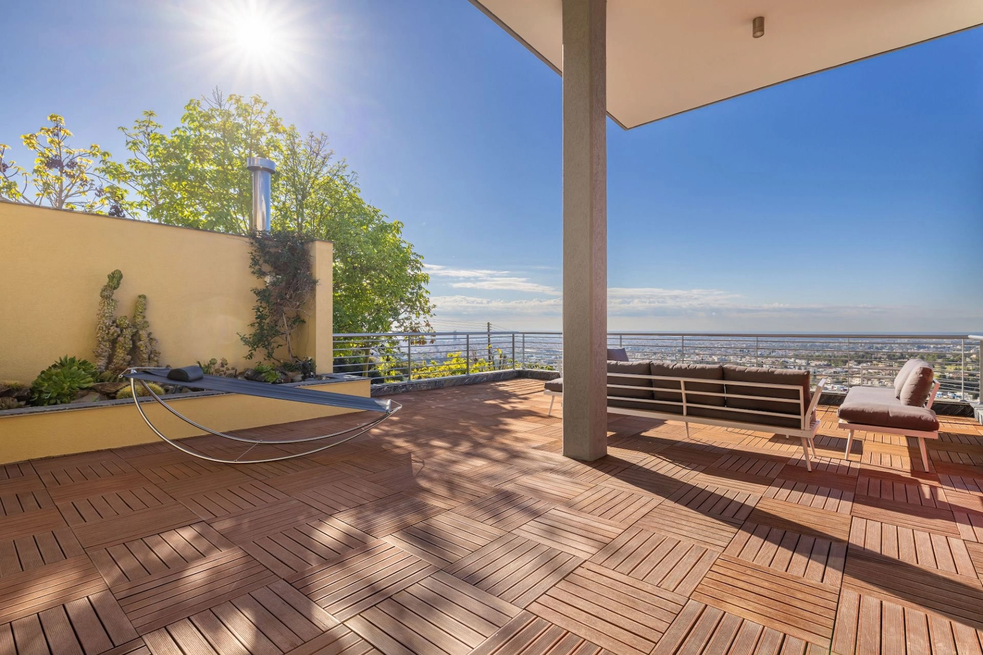 On the 3rd floor you can find the floor-wide master bedroom with a walk-in wardrobe, a full bathroom including a jacuzzi-bathtub and a shower. The floor is complemented by a massive veranda with unobstructed City & Sea views, a kitchen, and an entrance with direct access to the road making the floor fully independent.