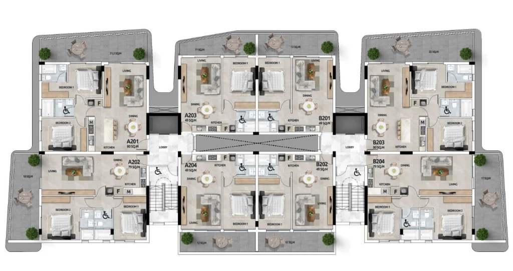 This exceptional project features four modern blocks, each rising gracefully to four floors, offering a total of 62 luxurious flats, including lavish penthouses.