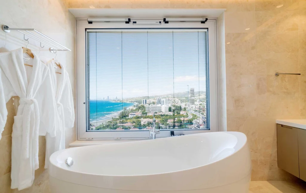 – Freestanding Villery & Boch bathtub offering sea views from the master suite