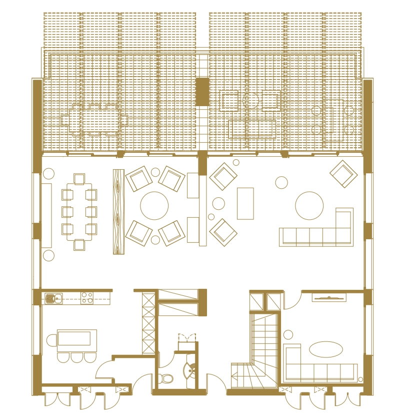– Living Space: Expansive open-plan layout across two floors