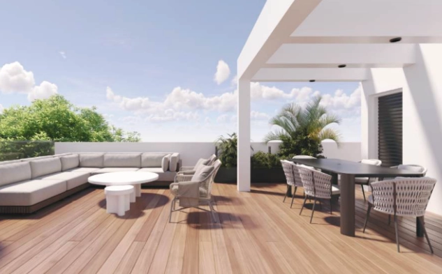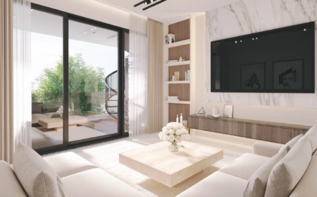 This elegant two-bedroom apartment is located on the second floor of a modern residential building in Livadia, Larnaca. It features a private roof garden accessible via a staircase from its balcony, offering a perfect blend of contemporary living and outdoor space. The apartment is constructed with high-quality materials, including heat-insulating bricks for walls and thermal insulation on the roof and external surfaces. The interior boasts ceramic tile flooring in kitchens, living rooms, and bathrooms, and walls finished with three coats of high-quality emulsion paint. The building complies with earthquake-resistant regulations, ensuring safety and durability. This apartment is an ideal choice for those seeking comfort, modern architecture, and energy efficiency in a stylish home.