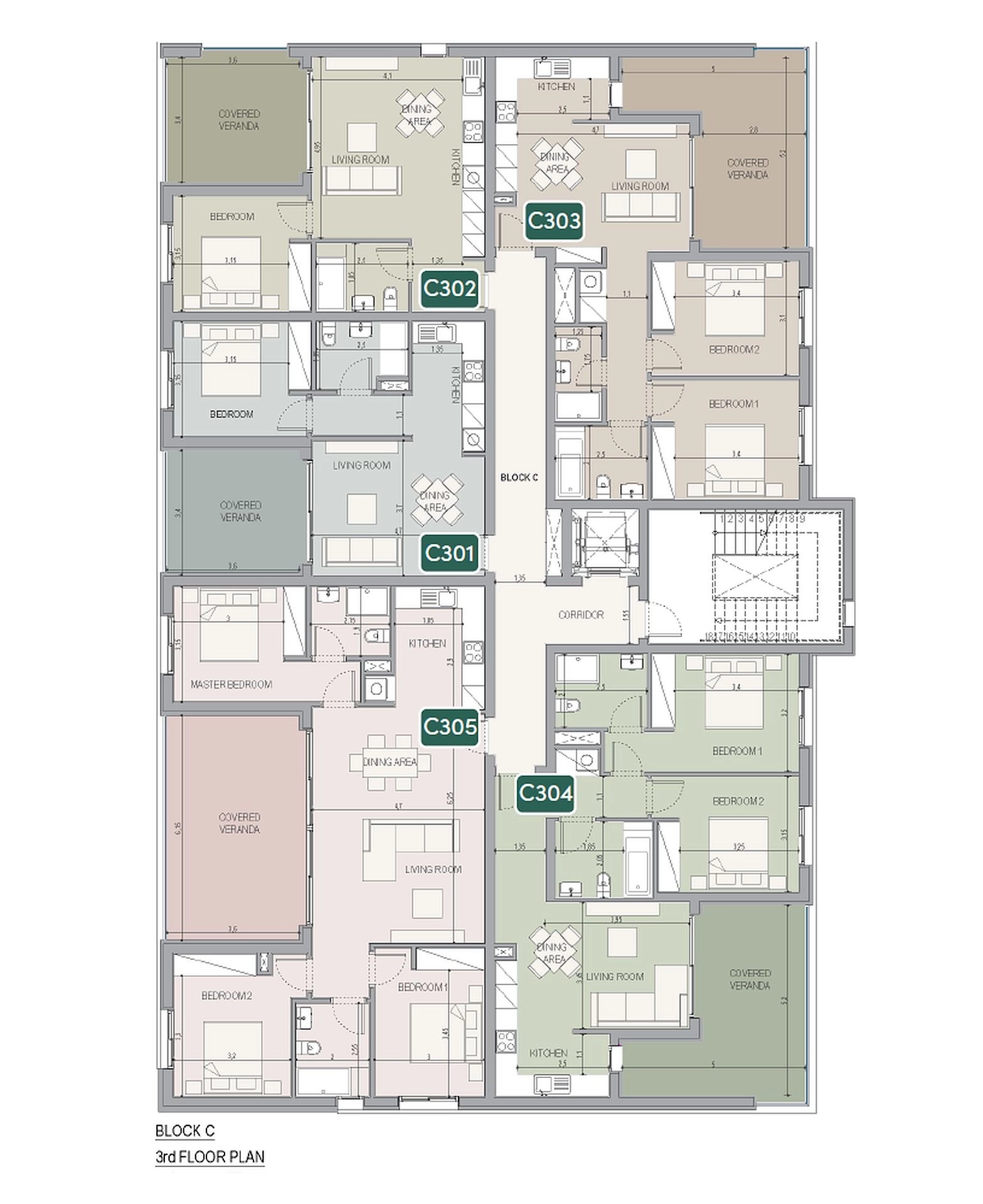 – Ceramic tiles in the toilets and bathrooms