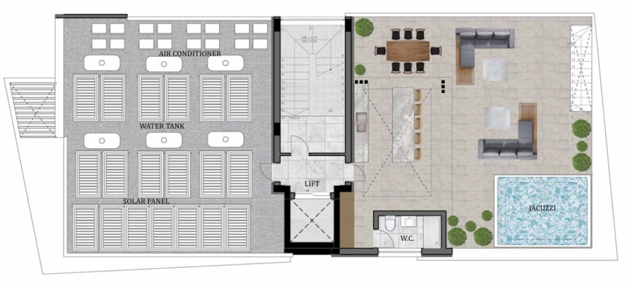 Designed with contemporary architecture and built to high technical standards, the complex consists of 6 spacious two-bedroom apartments and an elegant penthouse featuring expansive terraces and direct veranda access.