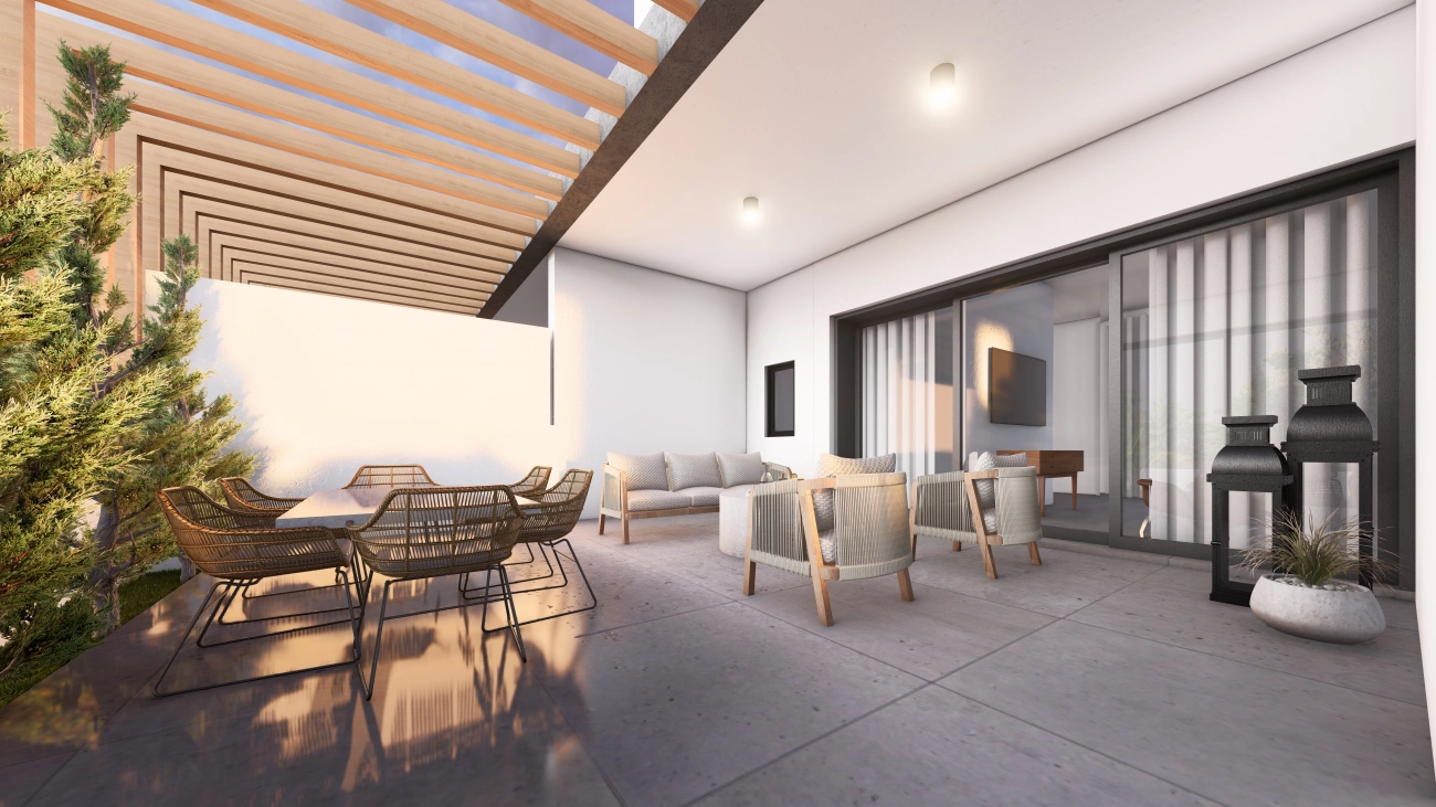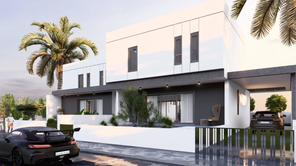 Three bedroom house for sale in Deftera Pano, Nicosia. This project, which includes two houses, combines high aesthetics and modern luxury. The house is located on a plot of 277 m2. The interior of the 151 m2 house turns into a cozy terrace. Each residence has Italian kitchens and cupboards. The building materials are of the highest quality.The residence has Class A energy efficiency. The heat-insulating facade, heat-insulated doors and windows, as well as a 4 kV photovoltaic system reduce utility costs. The plot has a covered parking and a garden.The complex is located in a developing area, in the village of Pano Deitera, in the province of Nicosia. Apart from the proximity to Nicosia, the two residences are just a short walk from a supermarket, pharmacy and bakery, as well as other services such as a school, gym, swimming pool and sports facilities. This project perfectly meets the needs of a modern family who is looking for a lifestyle beyond the hustle and bustle of the city, but at the same time enjoying the comforts of urban life nearby.