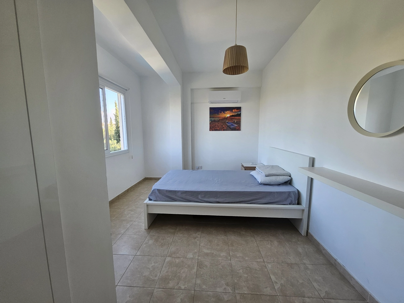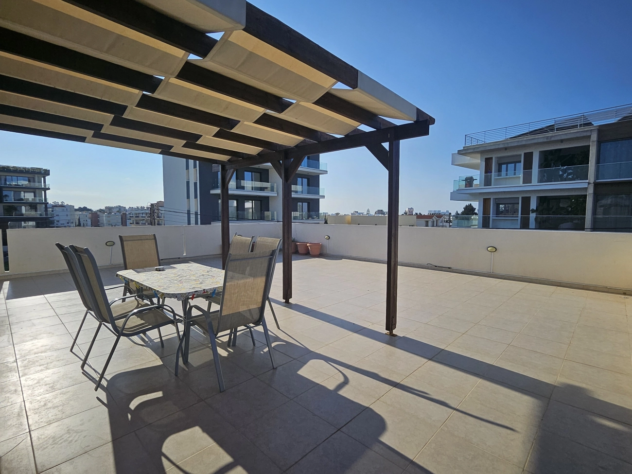 This generously sized 3-bedroom penthouse is ideally located in the popular Universal area of Paphos, offering a full-floor layout on the second floor with open, airy interiors and expansive balconies that enjoy a side sea view and overlook a green area.