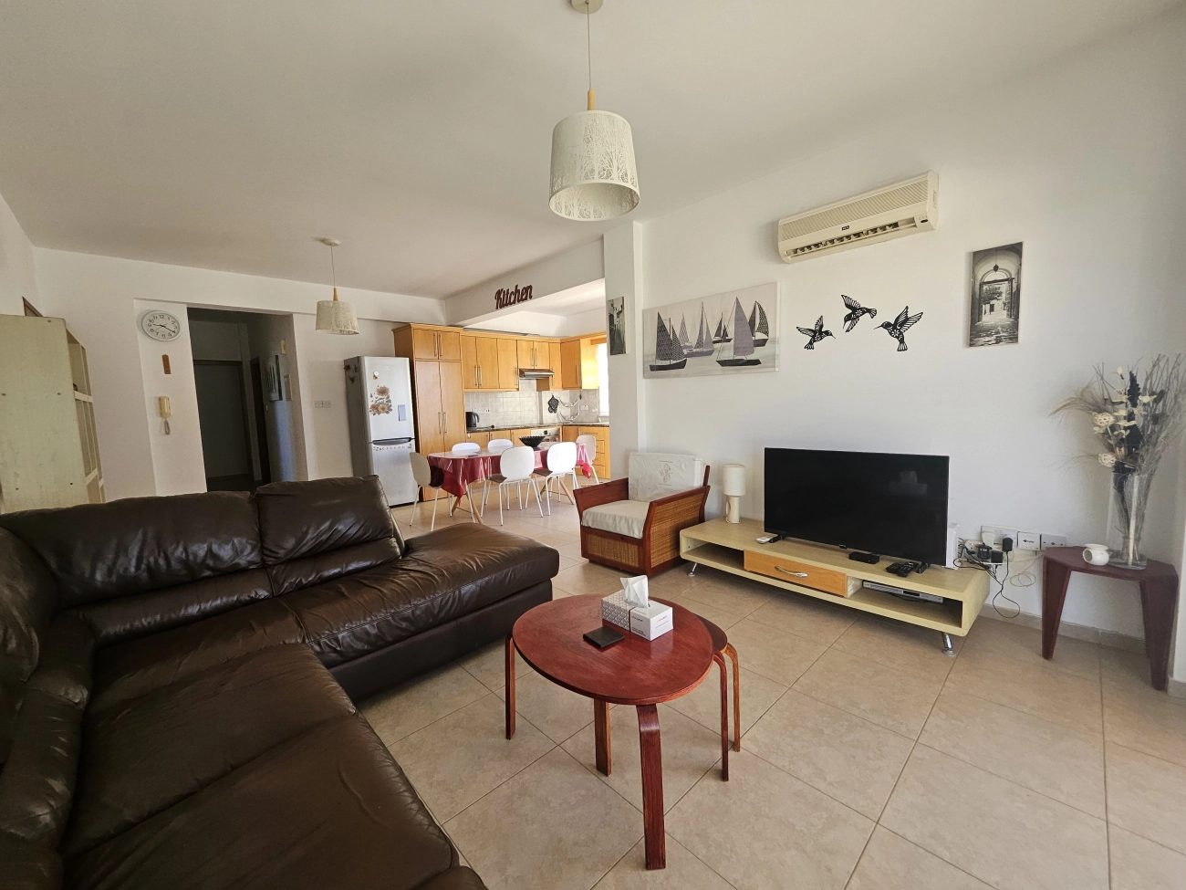 This generously sized 3-bedroom penthouse is ideally located in the popular Universal area of Paphos, offering a full-floor layout on the second floor with open, airy interiors and expansive balconies that enjoy a side sea view and overlook a green area.