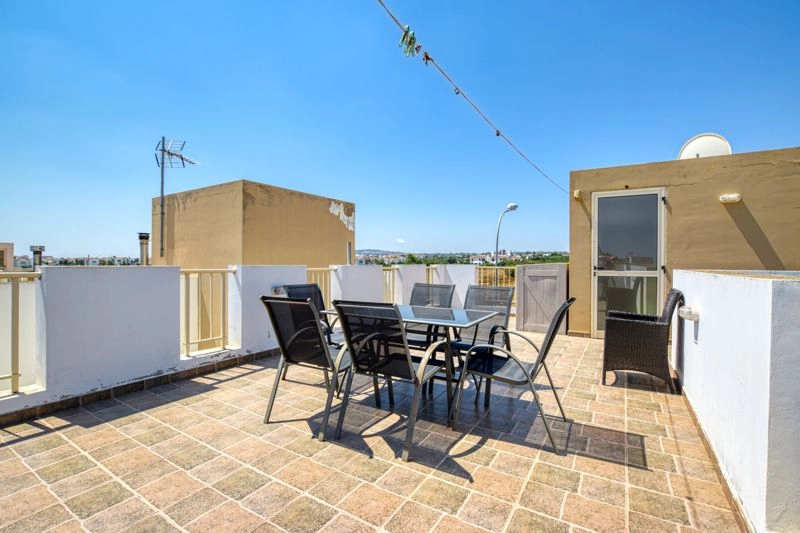 Three Bedroom Villa For Sale in Ayia Triada PRICE REDUCTION!! (was €220,000) A well maintained three bedroom villa located just a short walk from the golden beaches of the Ayia Triada coast. The villa has an open plan living, dining and kitchen area on the ground floor. There are double sliding doors leading out to a spacious veranda with private swimming pool. Upstairs there are three double bedrooms, one with ensuite facilities, and a family bathroom. The villa also boasts a private roof terrace for those wanting to make the most of the long summer nights. - 3 double bedrooms with fitted wardrobes - Master bedroom with ensuite facilities - 3 Bathrooms - Open plan lounge – dining – kitchen areas - Fully furnished - Large modern kitchen - Dining room has patio doors leading to the swimming pool and garden - Private balconies and roof top terrace - Private swimming pool 6×3 - Gas BBQ and dining table for outside dining - Internal 110 m2 - Plot size approx. 200 m2 - Communal Fees – approx. €400.00 per annum - Walking distance to local shops and amenities - Walking distance to the nearest beach - 45 minutes to Larnaca International Airport - Suitable for Cyprus Permanent Residency - Cyprus Legislation – Title Deeds with Application - Energy Efficiency TBC Ayia Triada The area of Ayia Triada is located between Kapparis & Protaras. There is a small fishing harbour and the main beach has fine golden sand with a view of the quaint chapel of Agia Triada (Holy Trinity). There are also beaches with secluded coves dotted along the coastline together with a selection of 4 & 5 star hotels & a variety of restaurants. This is a peaceful resort perfect for relaxation but within easy reach of the more bustling resorts and nearby towns. ———— * Close to the Beach * Sea Views * Private Swimming Pool * Suitable for Cyprus Permanent Residency * Cyprus Legislation – Title Deeds with Application * Resale * Energy Efficiency TBC Ayia Triada Ayia Triada County: Famagusta Sale Type: For Sale Ref #: 1346