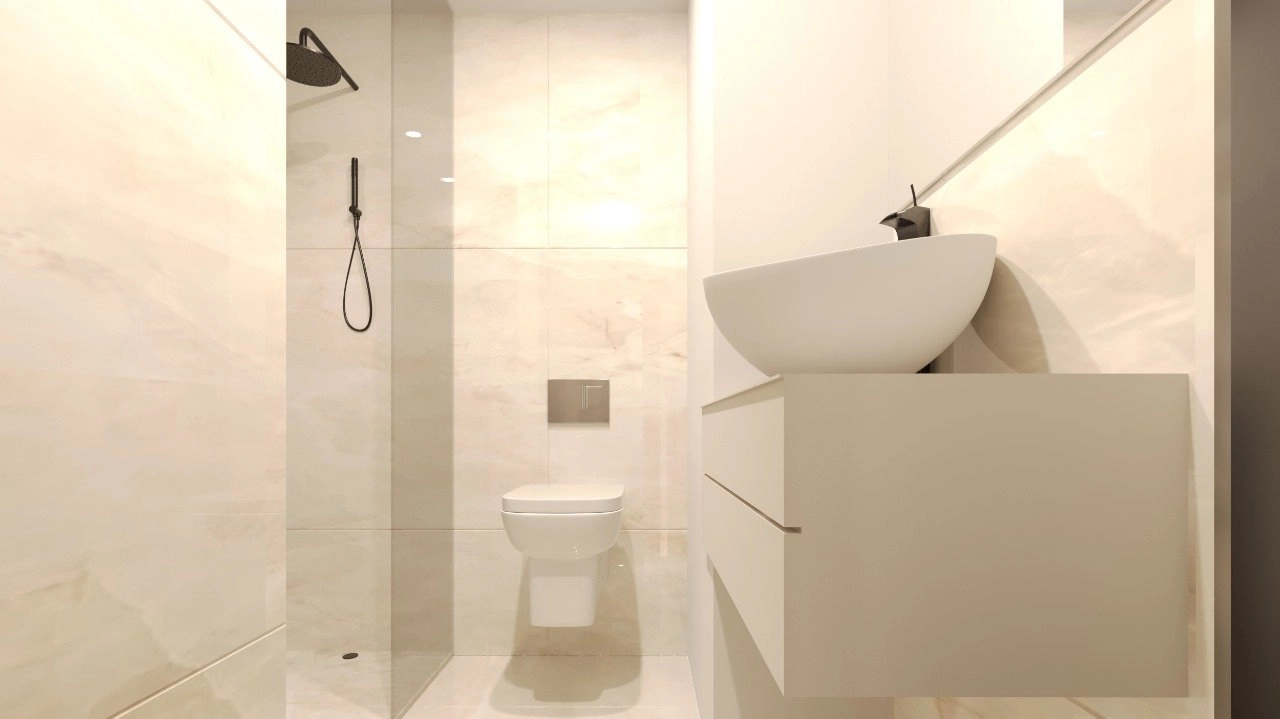 The building is only 2 levels high, and is built with top quality materials, will have excellent finishes and will consist of spacious 1- & 2-bedroom apartments with sea view from the penthouses.