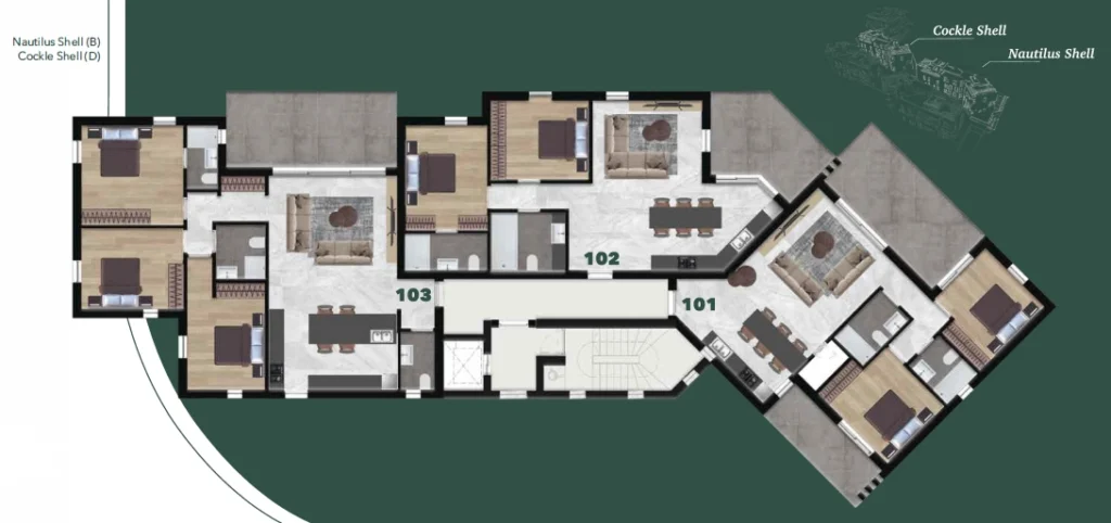 New apartments for sale in a gated complex in Livadia, Larnaca. Ceramic floors. Fire-resistant front door, video intercom and solar panels. There is a covered parking space with electric car chargers, a storage room. The complex consists of five 3-storey buildings. The complex has a playground, a gym and a communal swimming pool. Located near all amenities, the new marina and the American University. It is an ideal option for both living and investment. Construction has begun.