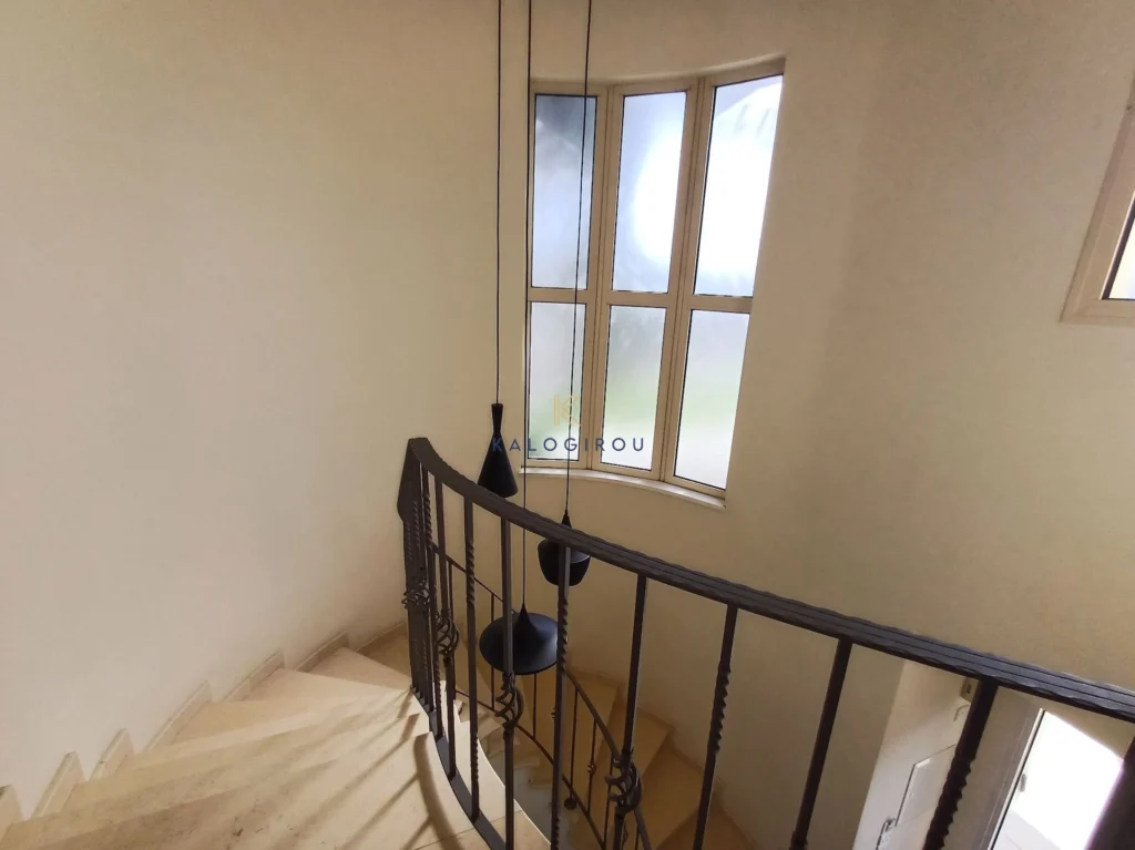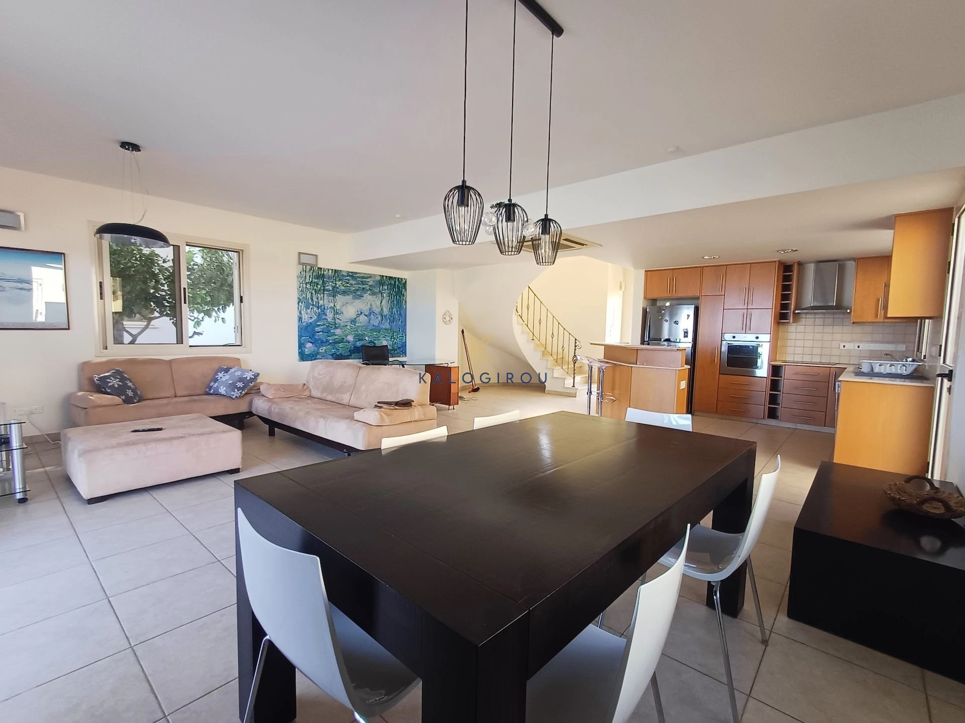 Villa for sale in Pervolia area, in Larnaca Town. The property is a fantastic two storey house with large outside spaces. It has internal covered area of 146 sq m. On the ground floor consists of living room and dining area, open plan kitchen, and a guest wc. On the first floor there are 3 bedrooms which all of them have en-suite shower and w.c, both of the bedrooms have nice balcony with amazing sea view.