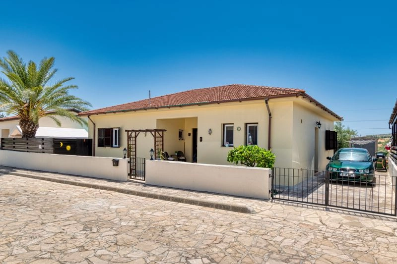 Three Bedroom Detached Bungalow For Sale in Skarinou, Larnaca This three bedroom bungalow is situated in a quiet Cul De Sac in the village of Skarinou, a short distance to Alpha Mega supermarket and all other local amenities available in the village including very popular Golden Donkeys Farm. Comprising of open plan kitchen, dining and lounge area. leading onto the pool and garden area. Three good size bedrooms and family bathroom. Outside a private pool situated within a mature garden with stunning views of the surrounding area. This is a wonderful place for those who are seeking a peaceful retirement setting or those with young families who want a safe, healthy environment for their children and would like to escape the hustle and bustle of the tourist areas and just want to sit back, relax and enjoy life in the sun. - 3 bedrooms - Master bedroom with en suite - Open plan living – dining - Kitchen - Family bathroom - Air conditioning - Fly screens - Ceiling fans - Private swimming pool ( new pool liner September 2021 ) - Fully decorated internally May 2022 - New water pump and appliances May 2022 - Internal 116 m2 - Veranda 5 m2 - Plot 360 m2 - Communal Fee (approx.) 100 Euros per annum - 1 minute to local shops and amenities - 10 minutes to sea and beach - 15 minutes to Larnaca International Airport - 60 minutes to golf course - Suitable for Cyprus Permanent Residency - Cyprus Legislation – Title Deeds with Application - Energy efficiency TBC Skarinou village Right at the heart of Cyprus, 190 meters above sea level and surrounded by hills, lays the picturesque village of Skarinou. Located near three of the main towns of the island, Nicosia, Limassol and Larnaka, right off the main motorway interconnecting these three towns, Skarinou combines the qualities of country life with the luxuries of life in town. Built on the side of the hill with the unique Cypriot terrain as its background, Skarinou preserves its traditional architecture. The houses resemble the old traditional stone buildings reminiscent of days with their central courtyards and heavy, big entrance doors and don’t be surprised if you are called in by these hospitable people to be treated to a homemade sweet or a cup of coffee as this is considered natural and is very common. As with most small villages in Cyprus, Skarinous dominant land mark, is the church of The Guiding Virgin Mary, there is also Golden Donkeys Farm and Dipotamos Donkey Farm where you can enjoy a ride in nature and taste donkey milk. You can also see the Donkey milk beauty products. ———— * Private Pool * Air Conditioning * Suitable for Cyprus Permanent Residency * Cyprus Legislation – Title Deeds with Application * Resale * Energy Efficiency TBC Skarinou Skarinou County: Larnaca Sale Type: For Sale Ref #: EPCC1280