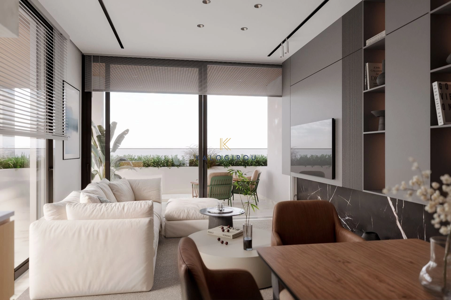 First floor apartment for sale in New Mall area, Larnaca Town. With comfortable & light- filled spaces, the apartment consists of an open plan kitchen, living, dining area, covered veranda, a main bathroom, two bedrooms and en suite with shower master bedroom. The residents have access to an allocated covered parking space and storage room.