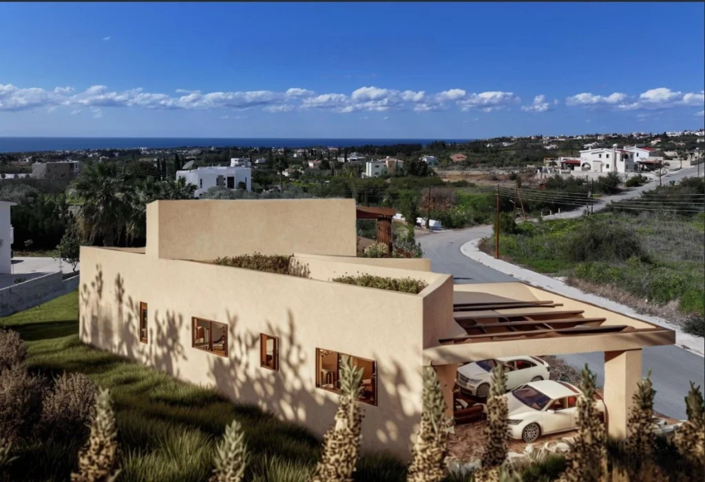Nestled in a peaceful rural setting just minutes from Sea Caves, Coral Bay, and Peyia, this stunning contemporary residence blends modern design, sustainability, and luxury living. Set on a generous 980m² plot with beautifully landscaped gardens, this one-of-a-kind property offers privacy, breathtaking sunset sea views, and exceptional indoor-outdoor living.