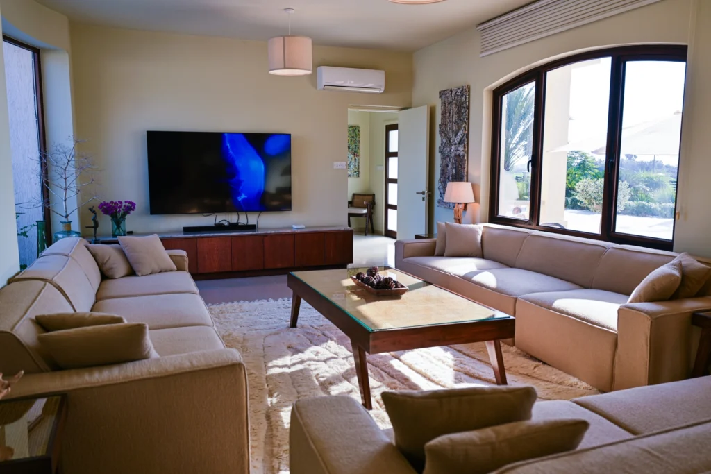 Luxury villa 6+1 for sale in Kiti, Larnaca, on a large plot of 4750 m2. This unique property offers incredible opportunities for comfortable living and investment. The villa is divided into 3 separate entrances, which allows it to be converted into two adjacent buildings with independent entrances — an excellent solution for multi-family living or renting.The house is fully furnished and equipped with all necessary household appliances. All rooms are equipped with air conditioning, which ensures comfort at any time of the year. The villa has 4 kitchens (2 main and 2 auxiliary), which allows you to effectively organize a space for large families or events.There is also a garage, heated swimming pool, security cameras, as well as two roof lofts for additional storage. A water well has been drilled, 20 solar panels have been installed, which significantly reduces utility bills.A special feature of this villa is the 100 m2 guest house, which includes a living room, kitchen and bedroom — ideal for guests or rent. Located in a quiet area, close to all necessary amenities.This villa is an ideal choice for a large family or as a rental property. Call to learn more and arrange a viewing!