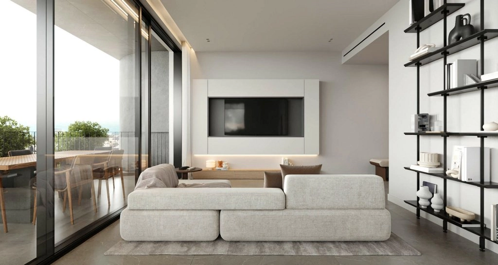 With only ten meticulously crafted apartments, the building ensures exclusivity and privacy. Each one- and two-bedroom residence is thoughtfully designed with open-plan layouts, oversized terraces, and high ceilings over 3 meters, enhancing the feeling of space and light. Floor-to-ceiling thermal aluminum windows and VRV climate systems provide year-round comfort, while photovoltaic panels, EV charging provisions, and net metering promote sustainability.