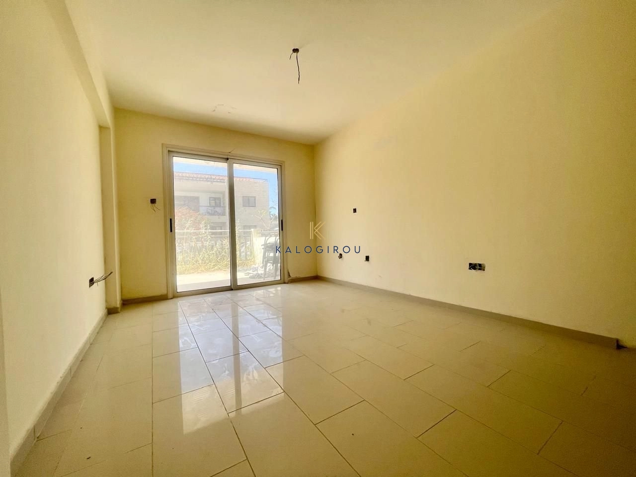 Apartment for sale in Larnaca, Tersefanou area. The apartment is on the ground floor with internal covered area of 55 sqm. It consists of an open plan kitchen, living area, one bedroom, a main bathroom and 12 sqm covered veranda. The bedroom has also access to the veranda. The property has right of use to a covered parking on the basement of the building.