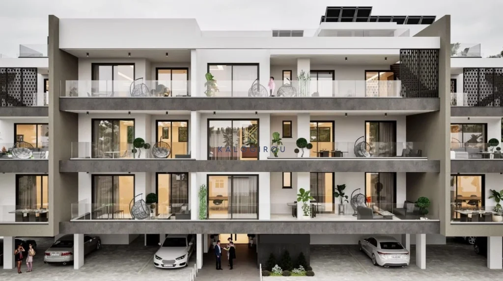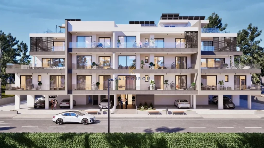 Apartment for sale in Larnaca, Aradippou area. It is a third floor apartment. The apartment consists of an open plan kitchen, living, dining area, a main bathroom, two bedrooms, master bedroom is en suite (shower), covered veranda and roof garden. The roof garden consists of a siting area, storage room, shower & wc. It is worth mentioning that there is provision for jacuzzi. Furthermore, the residents will have access to a covered parking and storage room on the ground floor.