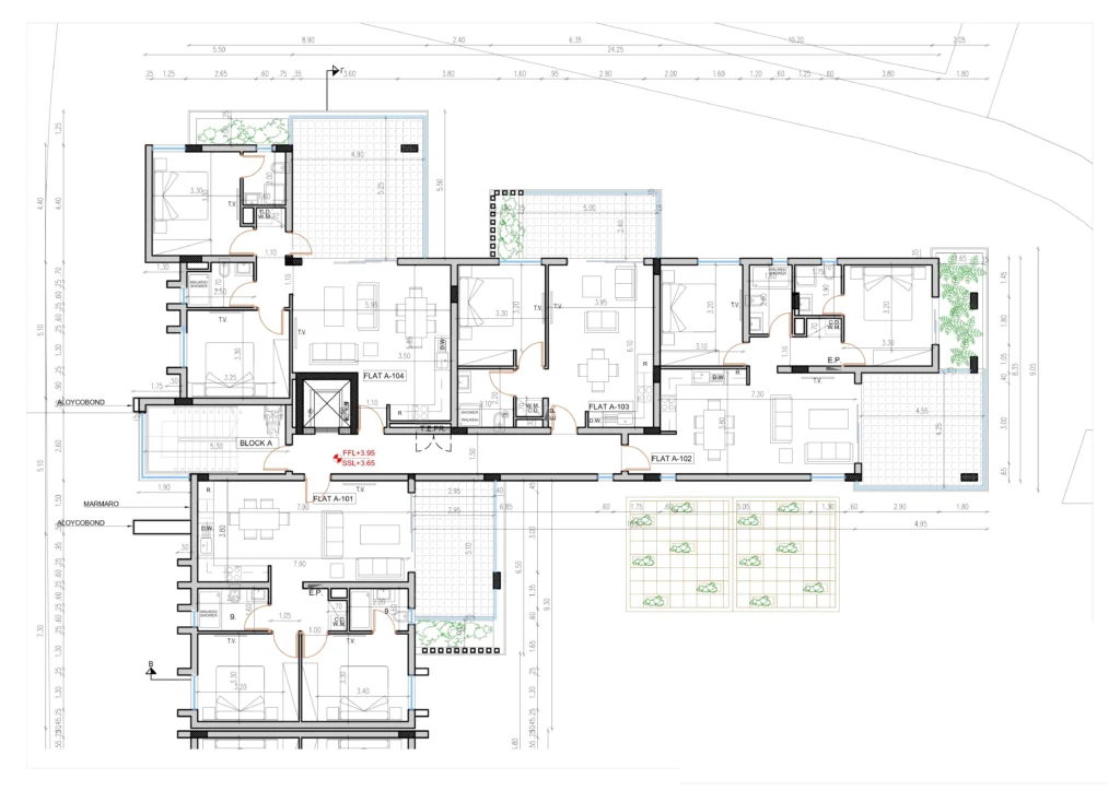 This beautiful two-bedroom apartment is part of a modern residential project comprising two blocks, located in a highly desirable area just behind the Central Alphamega supermarket in Larnaca, on a corner plot.
