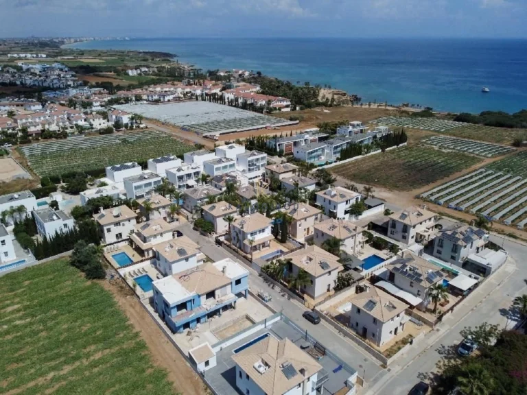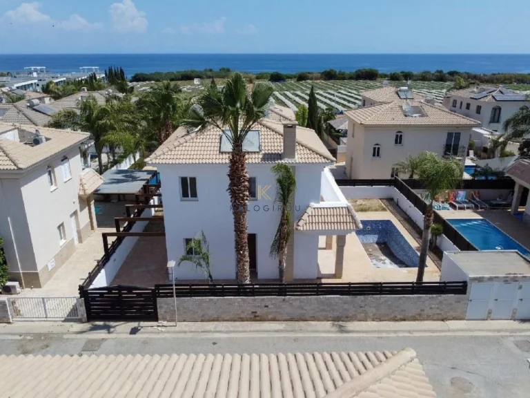 Sea View, Three Bedroom House with Private Pool For Sale in Kapparis, Famagusta. This detached two-storey house is located in the sought-after area of Kapparis, within the Paralimni municipality of the Famagusta district. The property is ideally situated in a quiet residential neighborhood that is very close to a variety of amenities such as supermarkets, cafes, restaurants, schools, and shops.