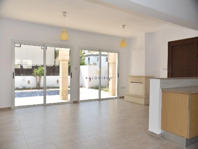 Externally, the property features a private swimming pool, covered and uncovered verandas, an uncovered parking space, and a garden. The house is fully fenced and sits on a plot of approximately 291 sq.m., with an internal covered area of around 123 sq.m.It is currently vacant and ready for immediate occupancy. The location provides easy access to all necessary amenities and beautiful nearby beaches.