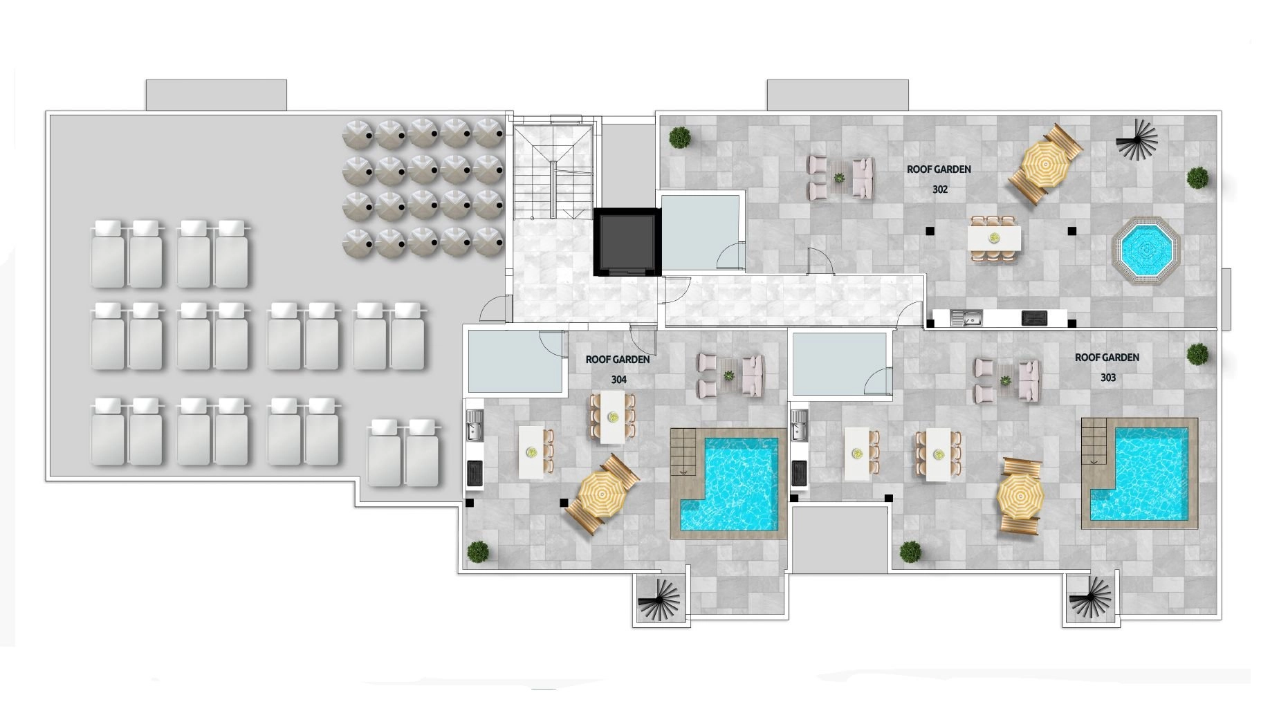 Penthouses owners will enjoy the breeze and sunlight from their private roof garden while relaxing in their private jacuzzi.