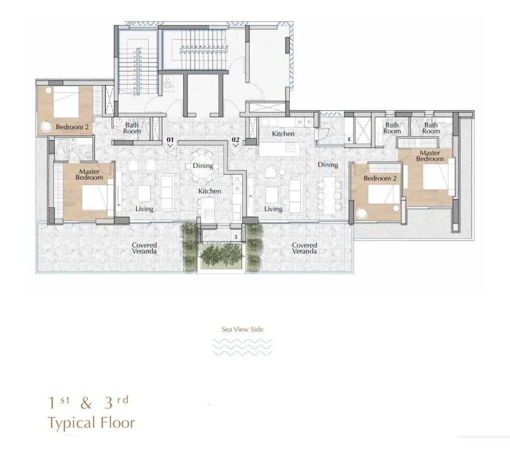 This project offer beautiful living spaces facing the sea. Comprised of eight 2-bedroom apartments and five whole-floor 3-bedroom apartments with maid’s quarters, this modern complex combines a contemporary architectural design aesthetic with understated elegance.